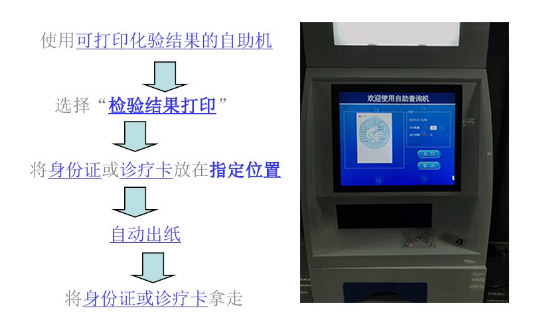 只要在自助報告打印機刷卡,報告單就自動打印出來了,整個過程只需一分鐘左右。報告自助打印機,打印檢驗報告單就像在ATM機里取錢一樣方便了。
