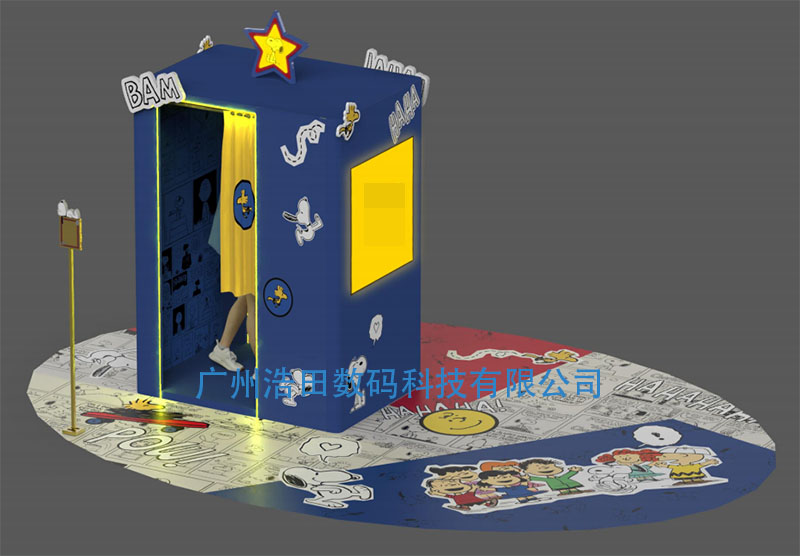 這是廣州浩田定制機身的案例,其機身顯“深藍黃色的燈光”好像黑夜中發亮的月亮引人注目,還有很多可愛的卡通圖案點綴其中,這些潮流的設計和年輕化的符號,適合家長帶小孩,或者年輕情侶一起來找。韓式流行自助大頭照可以用在廣場步行街上的游玩設備,增加人流量和使用率。